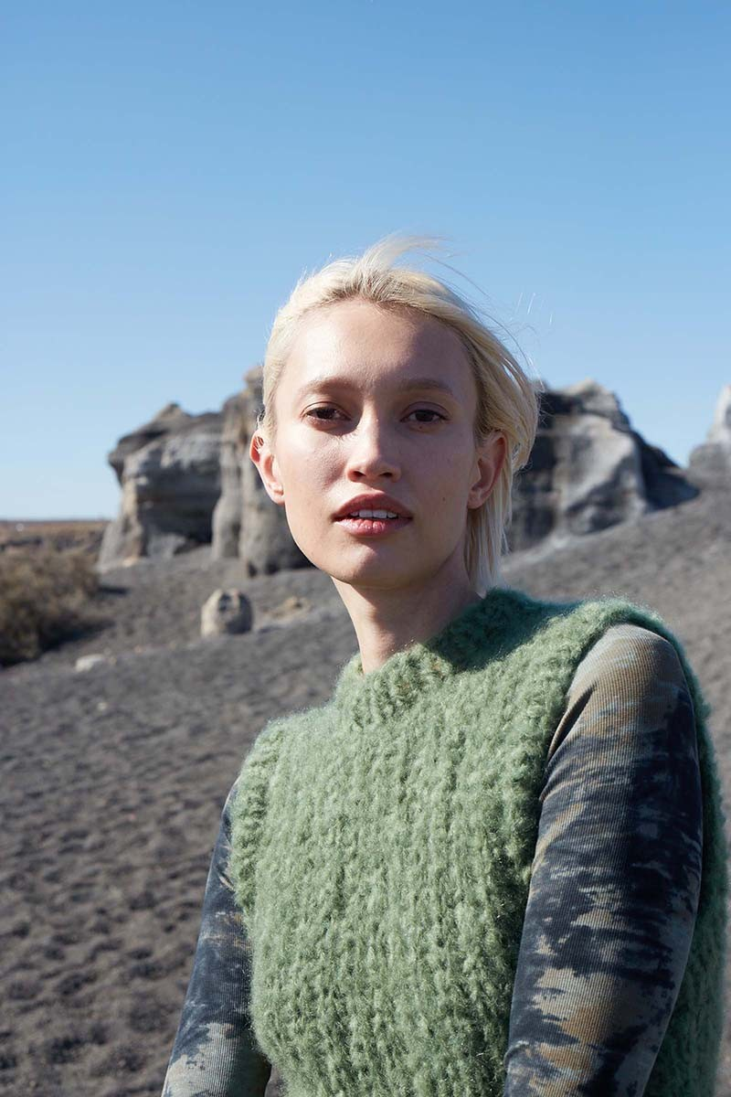 De EVERGREEN TONIC debardeur is een bron van blijvende inspiratie, waarbij elke rij naadloos aansluit op de vorige en een harmonieus geheel vormt. Gebreid met het luchtige Desire garen van Wooladdicts by Langyarns, vangt elk steek de essentie van frisheid en vernieuwing. Dit super bulky mohairgaren, bestaande uit 82% superkid mohair, 15% zuivere scheerwol en 3% nylon, maakt deze slipover heerlijk zacht en volumineus.